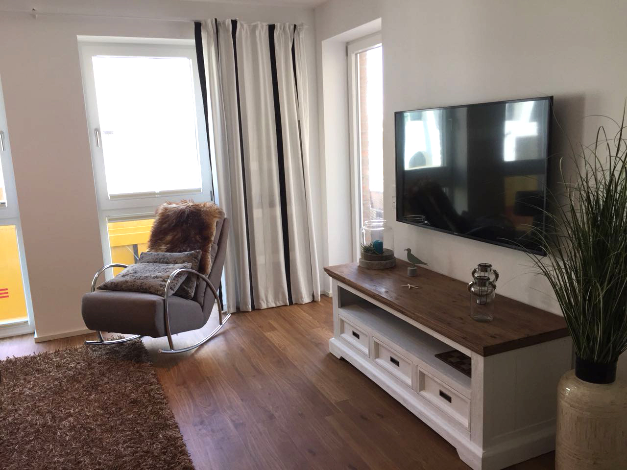 Mit Liebe zum Detail eingerichtet, erwartet Sie eine hochwertige Vier-Sterne Ferienwohnung für 4 Personen. Die Wohnung ist auf Gemeinsamkeit konzipiert, den Mittelpunkt bildet mit knapp 37qm der offene Wohn-Essbereich mit integrierter exklusiver Küche mit grossem Kochblock für Gerne-Kocher.