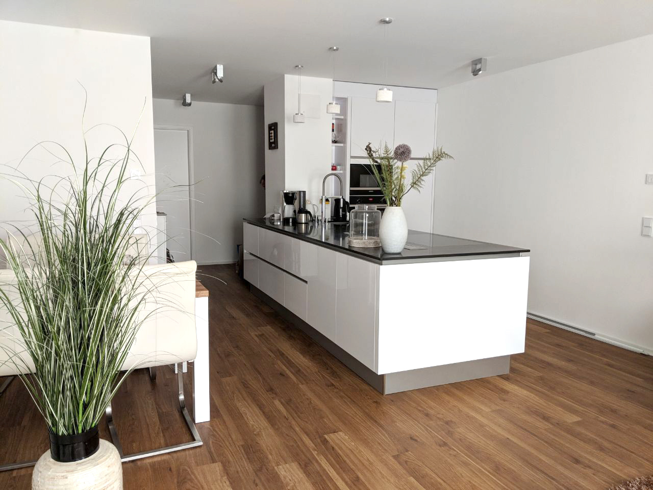 Die Küche ist Herzstück der Wohnung und offen zum Wohnbereich gestaltet. Gemeinsame Zeit verbringen und mit höchster Annehmlichkeit kochen steht hier im Vordergrund.